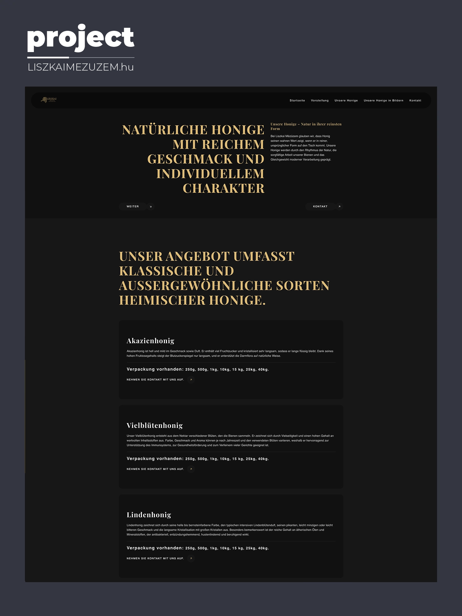 Liszkai Borház Kft. számára készült bemutatkozó weboldal